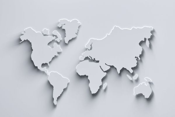 Mappa del mondo bianca in 3D lontano dallo sfondo