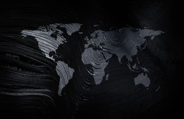 Mappa del mondo evidenziata su un primo piano di una foglia di palma. Combinate questa carta da parati con foto nella vostra casa per un'atmosfera ancora maggiore.