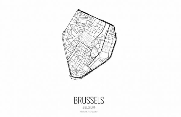 Carta da parati fotografica originale con una mappa di Bruxelles. Design unico di WallMappy