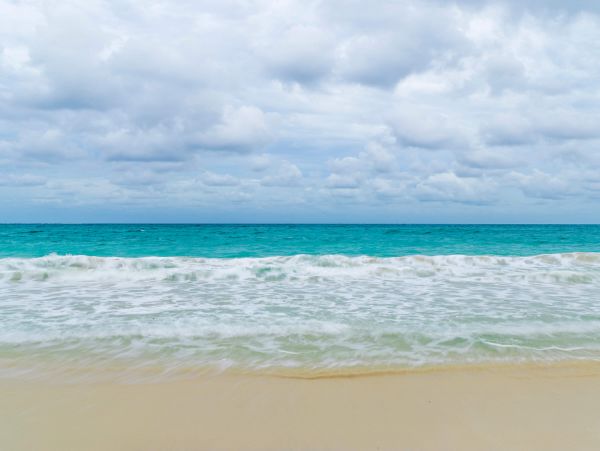 Sfondo fotografico con acqua ondulata su una spiaggia. C'è una vista lontana dell'acqua. Questa vista dà profondità alla carta da parati.