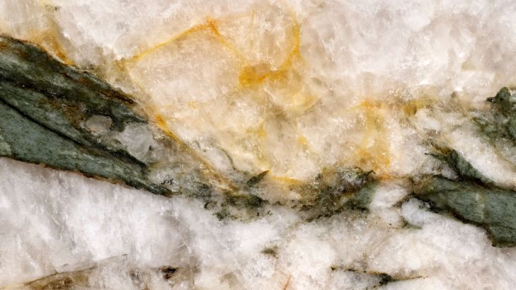 Marmo bianco con elementi verdi. Combinate questa carta da parati fotografica nella vostra casa per creare ancora più atmosfera.