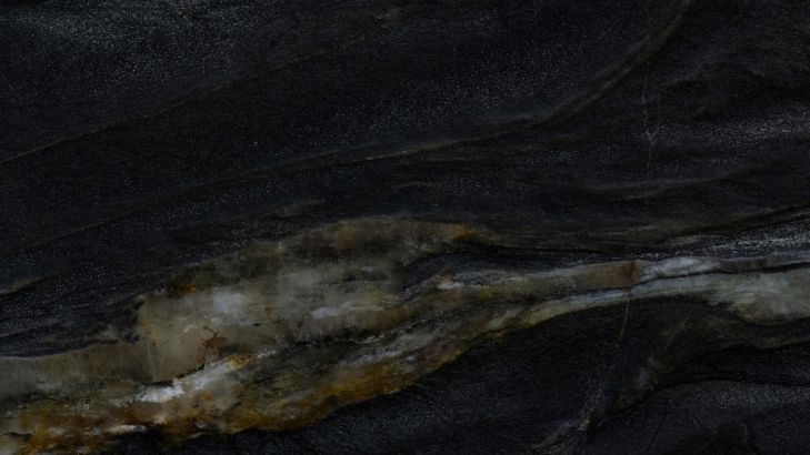 Marmo nero con rilievi. Grazie al colore scuro del marmo, questa carta da parati fotografica può essere combinata con altre carte da parati, ad esempio in cucina.
