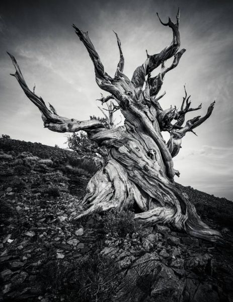 Methuselah albero su carta da parati foto. Il più antico pino di Bristlecone vivente sulla terra. La foresta di pino di Bristlecone si trova tra le montagne bianche, California orientale, USA.