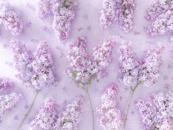Un bellissimo mix di fiori chiari su uno sfondo lilla. Illuminate la vostra casa con questo sfondo fotografico.