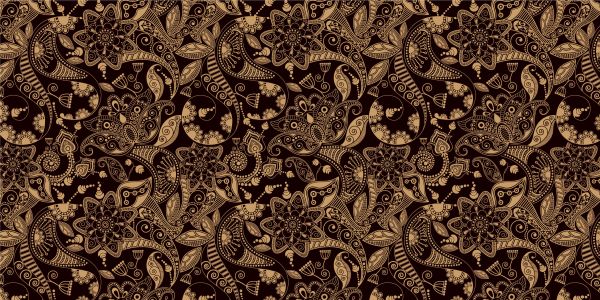 Motivi floreali dorati su sfondo nero. Questa carta da parati crea una stanza ricca di atmosfera.