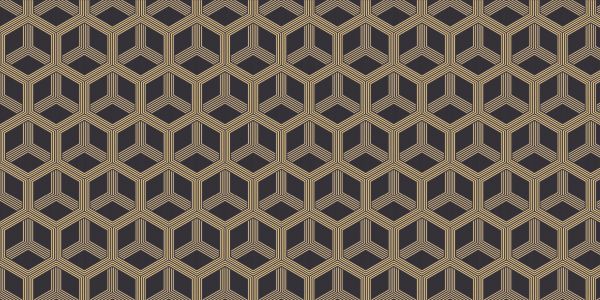 Carta da parati con motivo esagonale nero e oro. L'illusione fa sembrare che gli esagoni escano dalla parete.