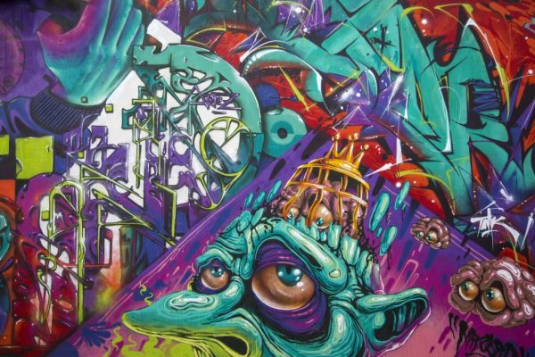 Kleurrijk behang gevuld met moderne graffiti.