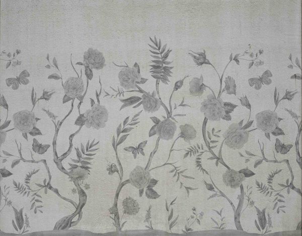Un disegno morbido e rilassante che cattura la tenerezza di fiori e farfalle in tenui tonalità di grigio, creando un senso di calma e serenità.