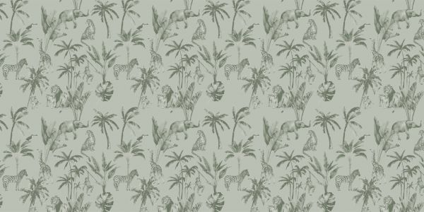 Un grazioso motivo illustrato della giungla nei toni del verde e del grigio.