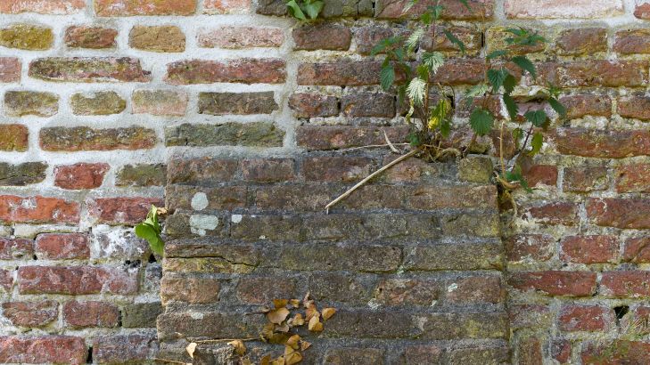Un vecchio muro di cinta, ormai rovinato ma riparato...