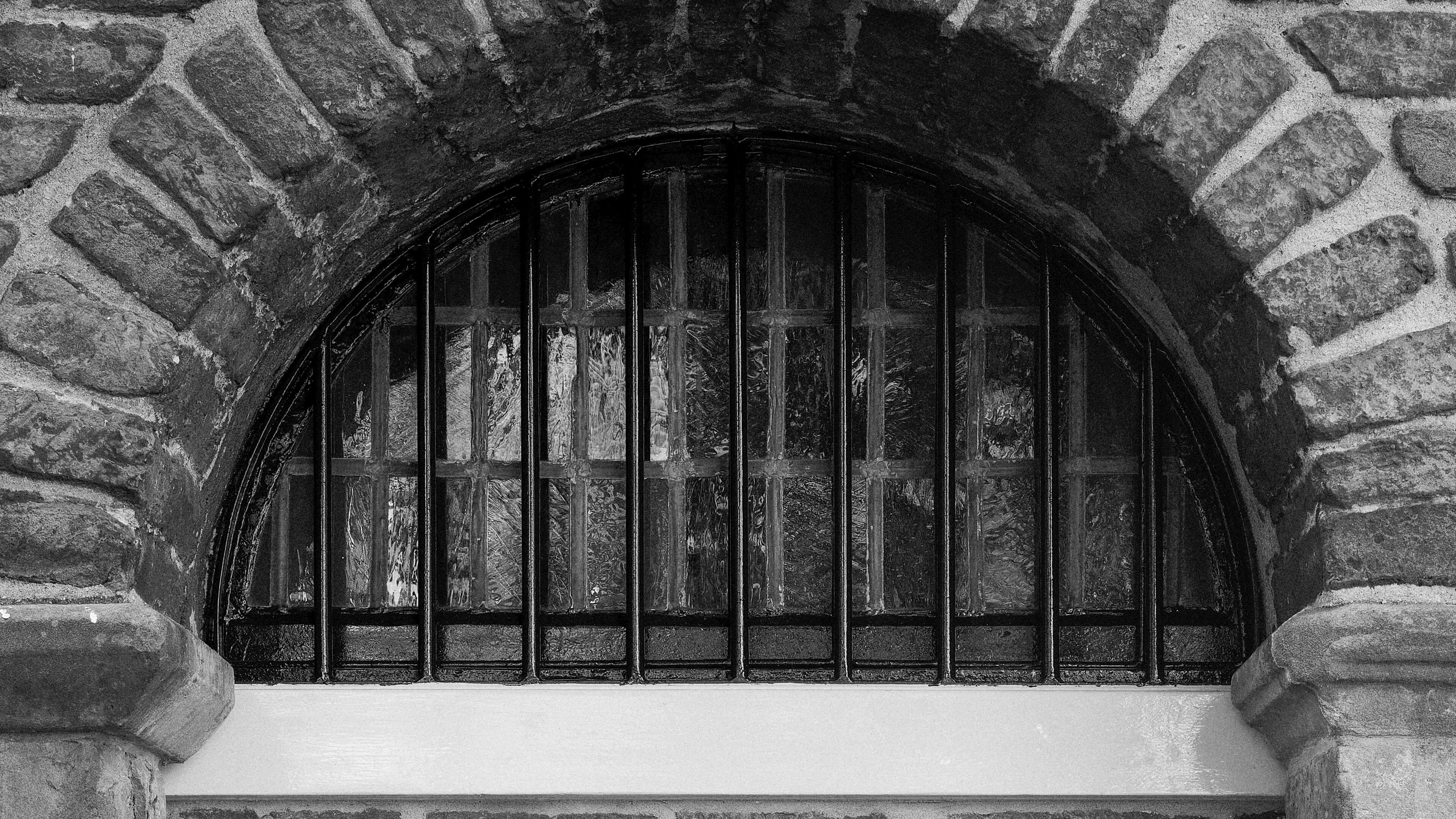 Muraglia della città vecchia con archi con recinzione dipinta di nero