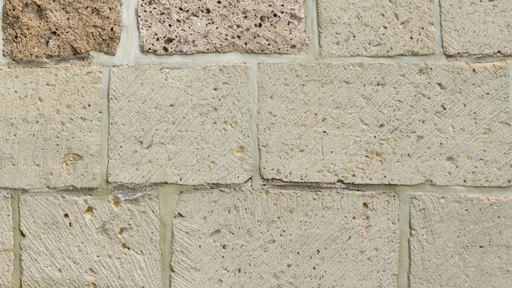 Muro con grandi mattoni in diversi materiali