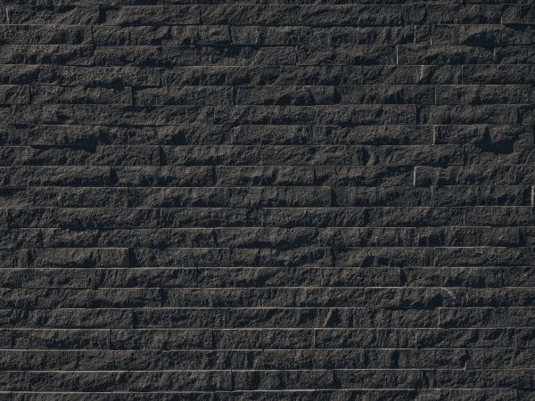Muro con grandi pietre scure. Questa carta da parati fotografica fa sembrare che la parete sia fatta di pietra.