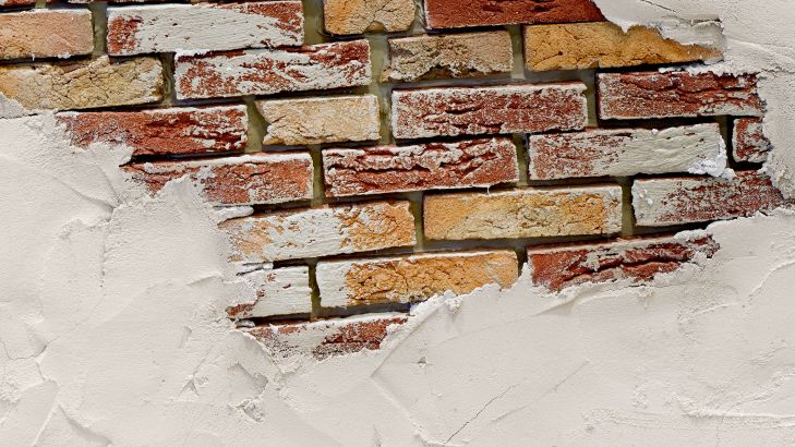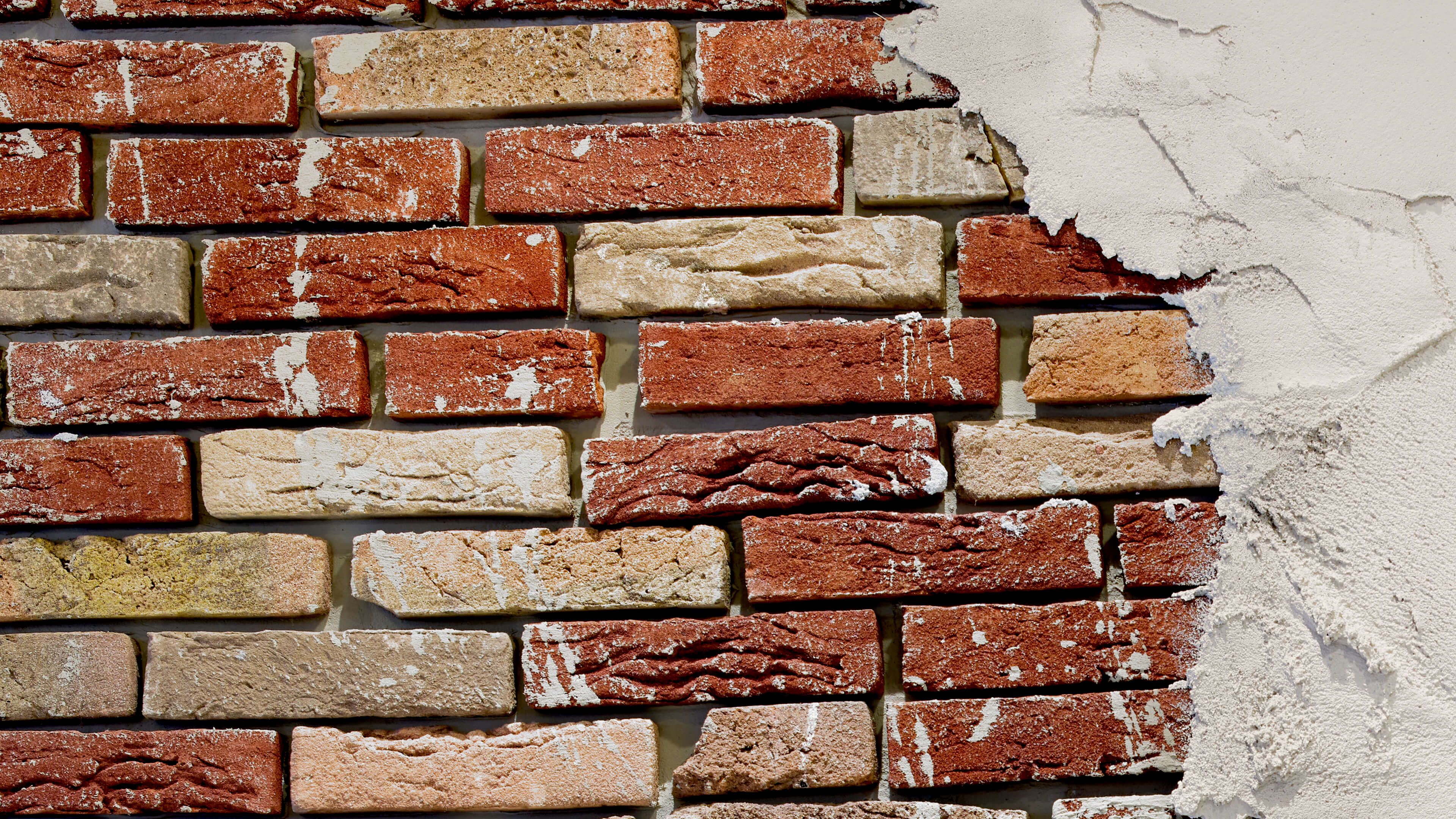 Muro con stucco e mattoni. Trasformate la vostra noiosa stanza in uno spazio unico con questa carta da parati fotografica.