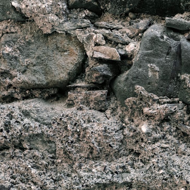 Muro con vecchie pietre di grandi dimensioni e vecchi stucchi. Combinate tutto questo a casa vostra.