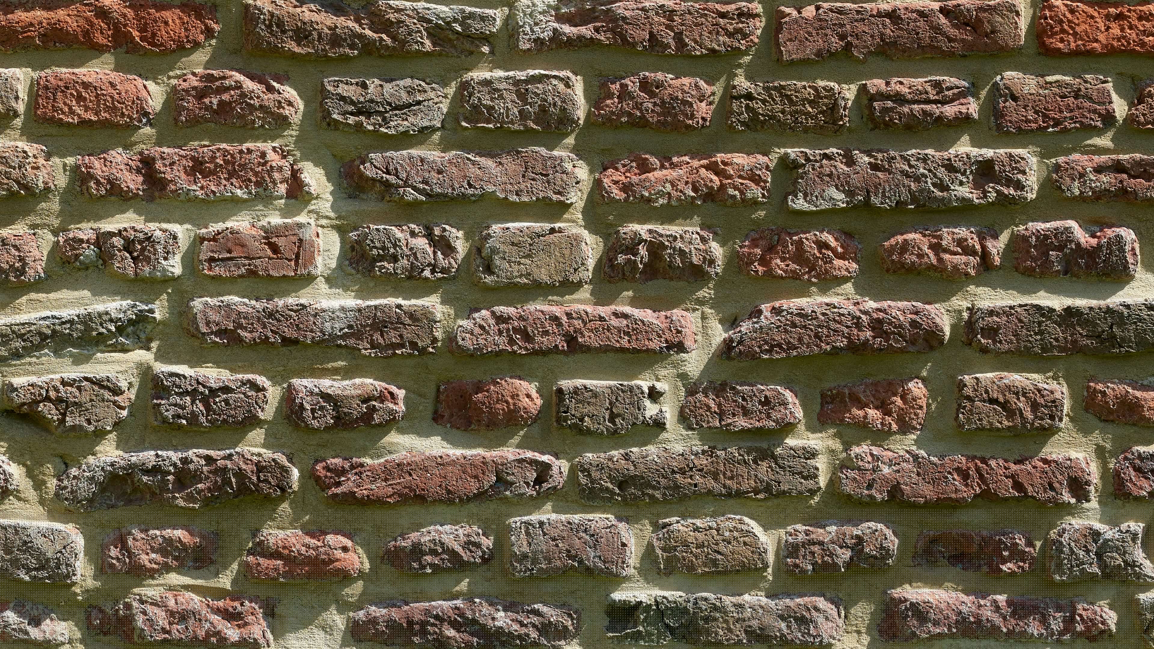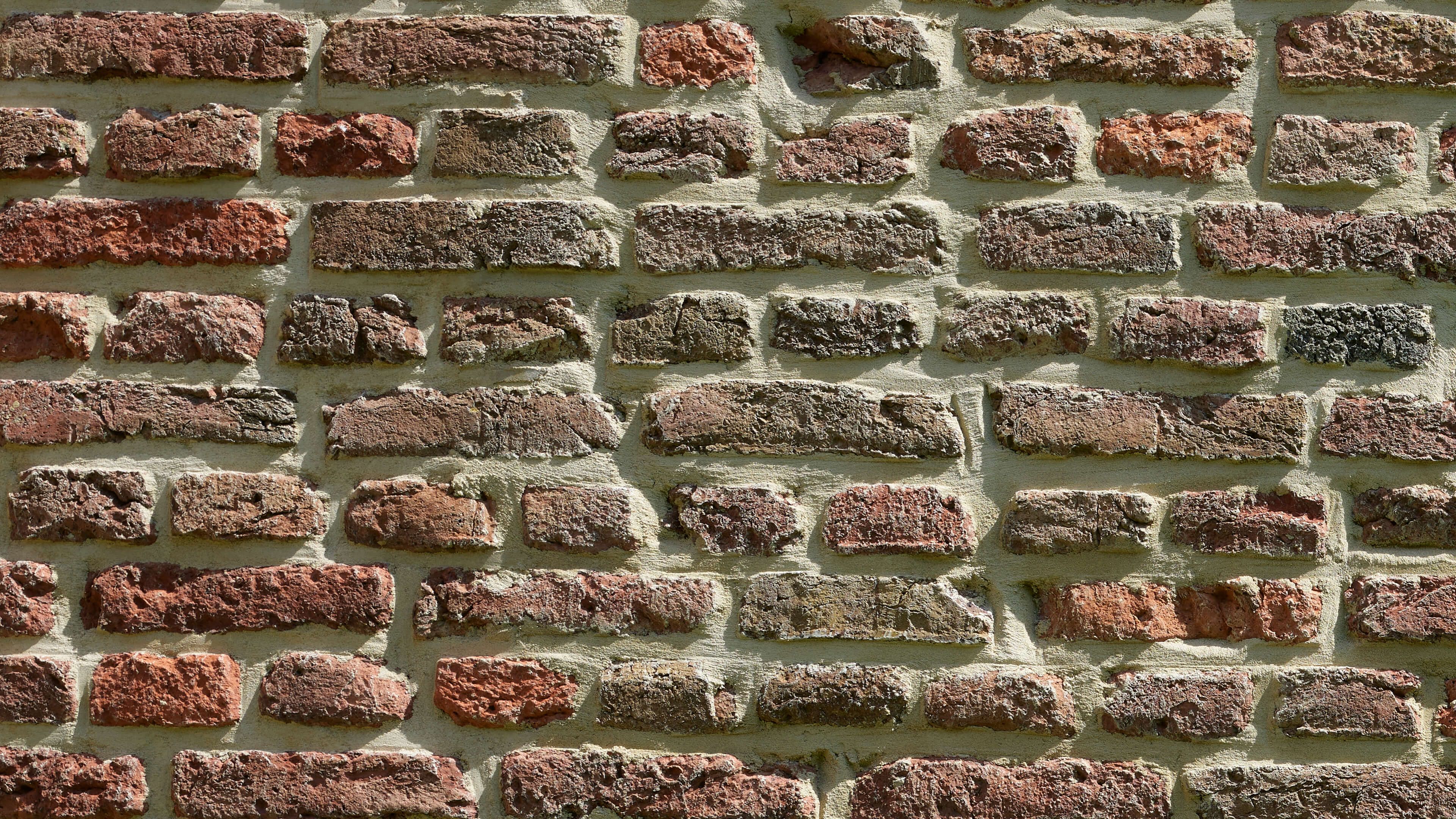 Caratteristico vecchio muro di mattoni con giunti che danno profondità al muro