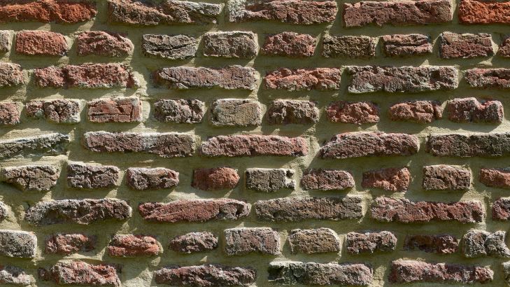 Muro di mattoni vecchi in diversi materiali
