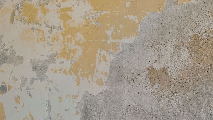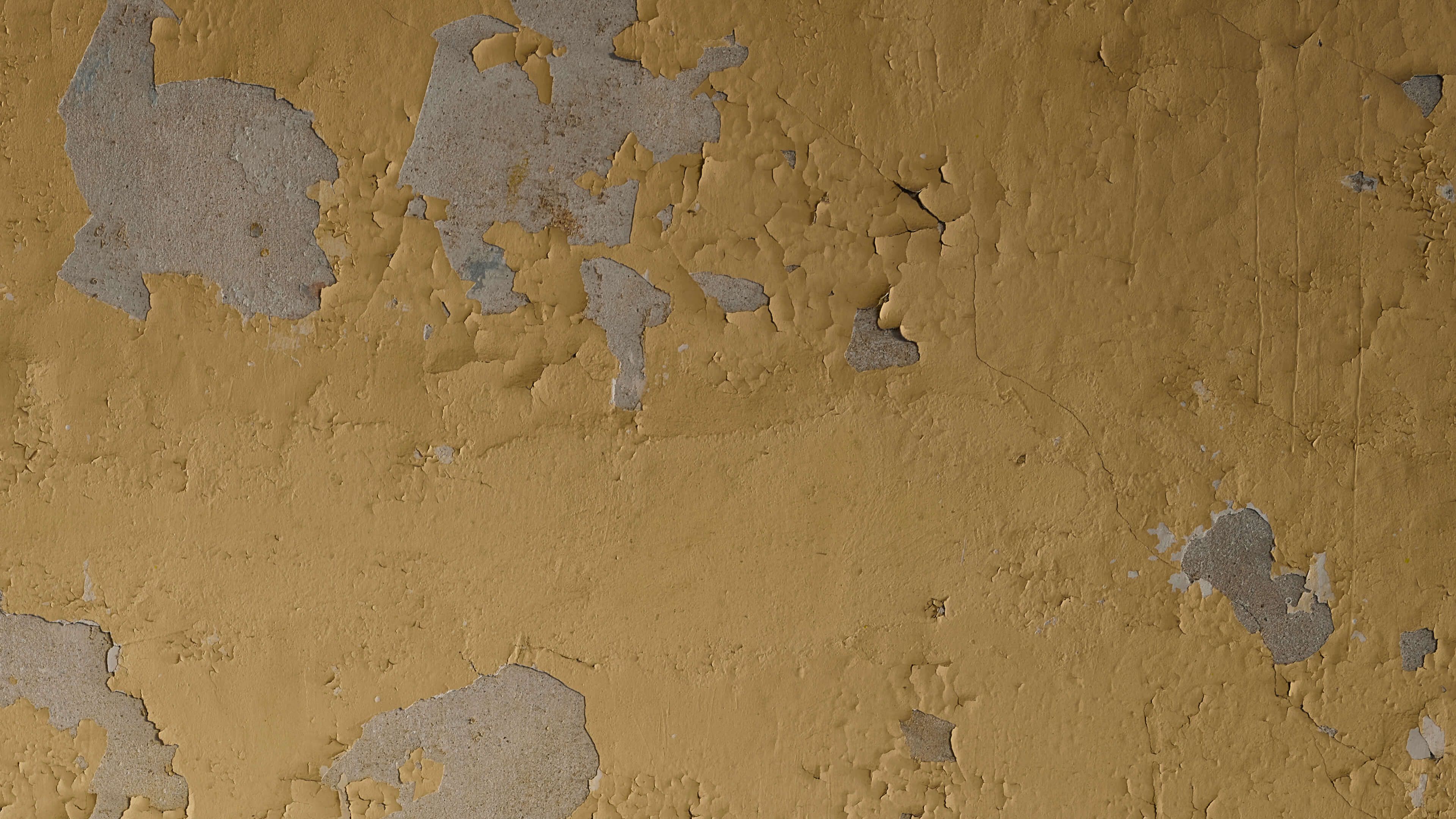 Muro giallo invecchiato in diversi materiali