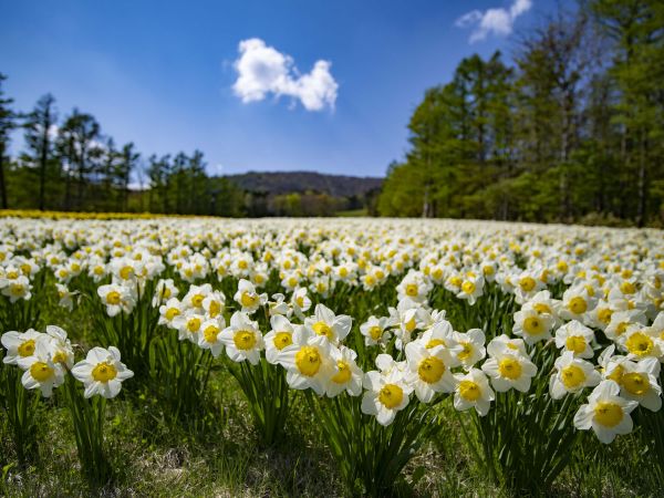 Un prato pieno di narcisi bianchi, con questa foto porti la primavera in casa tua.