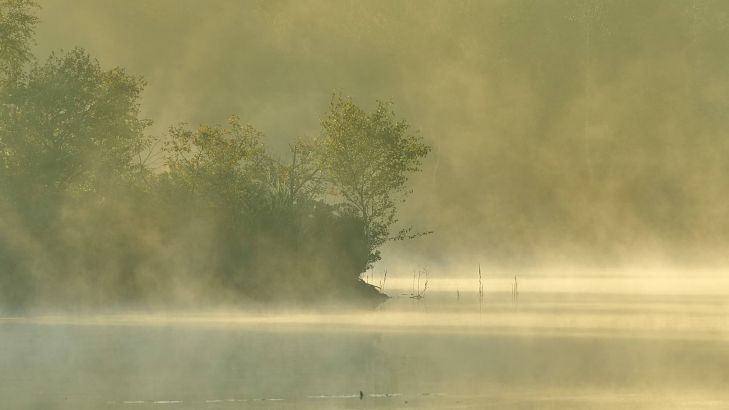 Nebulosa sopra un lago forestale