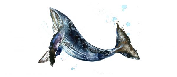 Una megattera galleggiante in acquerello.