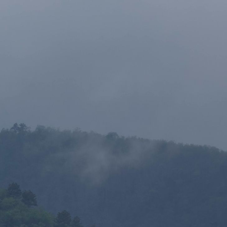 Nuvole basse sopra gli alberi di montagna. Combinate questa carta da parati fotografica nella vostra camera da letto.
