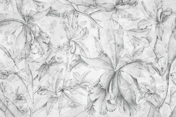 Un diseño elegante con flora detallada y colores sutiles. Las líneas finamente elaboradas y los tonos delicados crean una apariencia refinada, perfecta para un ambiente tranquilo y elegante.