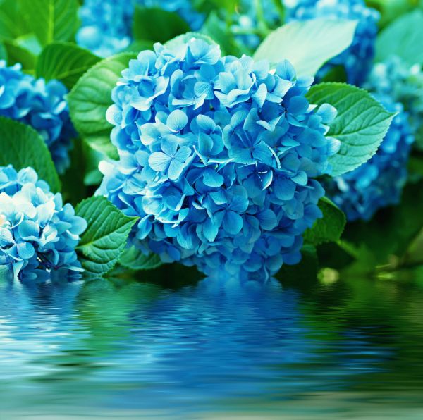 Ortensie blu in acqua. Da abbinare, ad esempio, in salotto per creare più atmosfera.