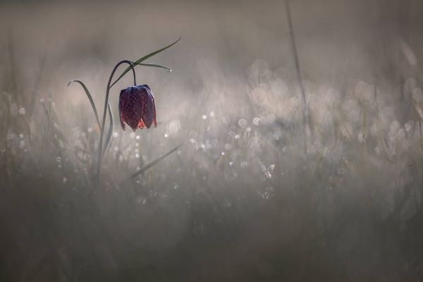 Un fiore appeso in un campo deserto. Combina questa carta da parati fotografica nella tua stanza.