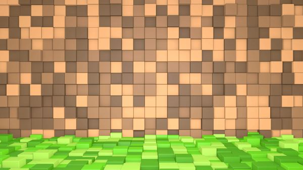 Paesaggio 3D di Minecraft con blocchi marroni all'interno. Se amate Minecraft questo è davvero uno sfondo per voi!