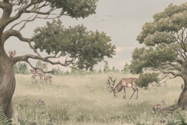 Carta da parati - Paesaggio con animali in beige