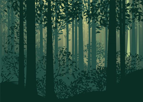 Un'illustrazione di un verde paesaggio forestale astratto.