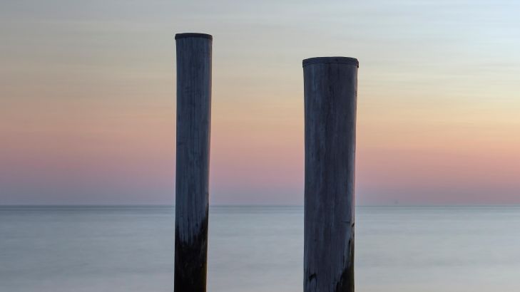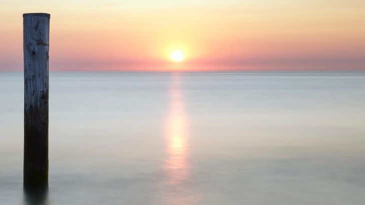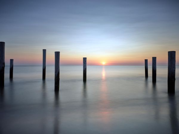 Bastoncini da spiaggia sulla spiaggia al tramonto