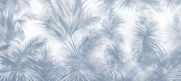 Eleganti foglie di palma in diverse tonalità di blu, che vanno dal blu pastello chiaro al blu marino profondo. Così si crea un'atmosfera calma, quasi costiera, con un tocco tropicale.