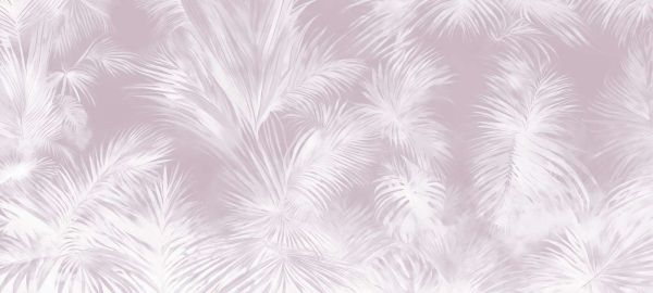Foglie di palma rosa con tonalità pastello morbide che evocano un'atmosfera femminile, giocosa e romantica. Una scelta fresca per chi cerca un accento tropicale sottile.