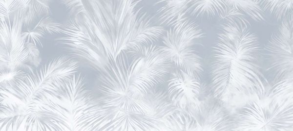 Foglie di palma leggere in morbide tonalità di blu e pastelli chiari, che riflettono la freschezza di un cielo sereno. Questi colori sottili portano un senso di spazio e spensieratezza in ogni stanza.
