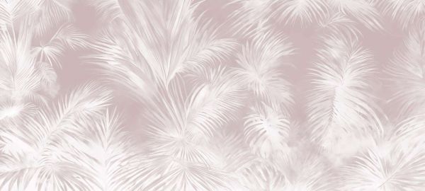 Un elegante motivo di lussureggianti foglie di palma in morbide tonalità beige e crema. Le sottili transizioni di colore e l'aspetto arioso creano un'atmosfera calma e raffinata, ideale per un interno rilassante con un tocco tropicale.