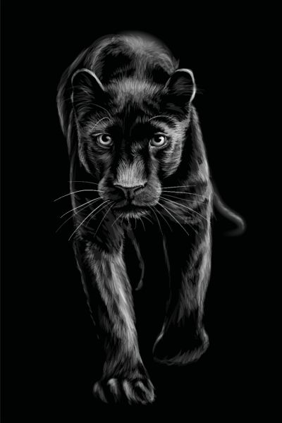 Pantera in fuga in diversi materiali