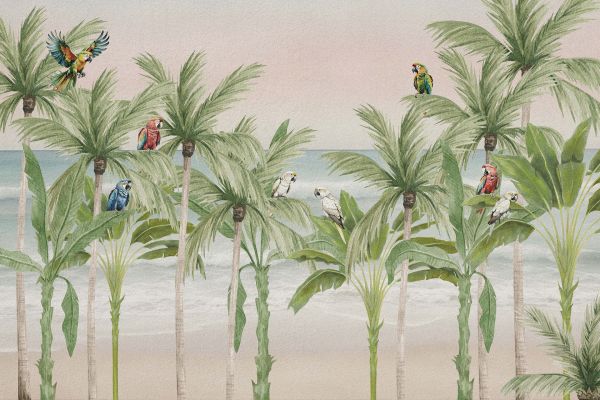 Carta da parati - Pappagalli sulla spiaggia a colori