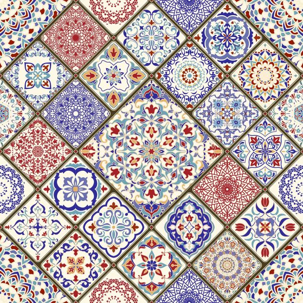 Carta da parati con patchwork colorato in stile turco. Un bellissimo motivo che crea maggiore atmosfera nella vostra casa.