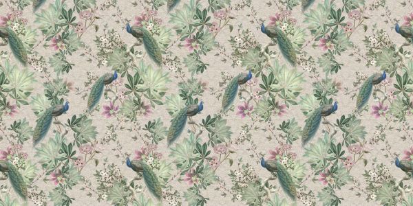Carta da parati - Pavoni da giardino vintage - crema