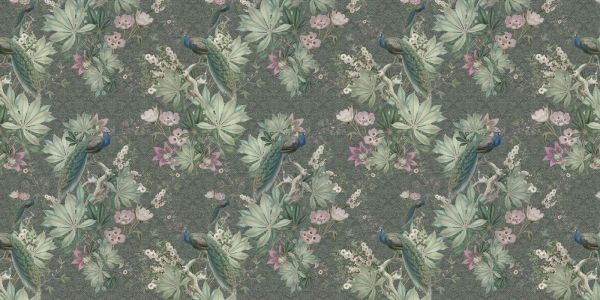 Carta da parati - Pavoni da giardino vintage - verde scuro
