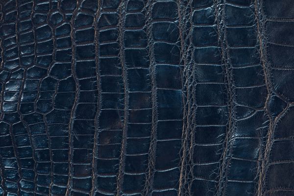 Pelle lucida di coccodrillo con una tinta blu. Combinate questa carta da parati con foto nella vostra casa per un'atmosfera ancora maggiore.