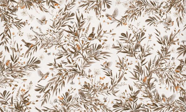 Carta da parati - Playful Robins - Vintage - White