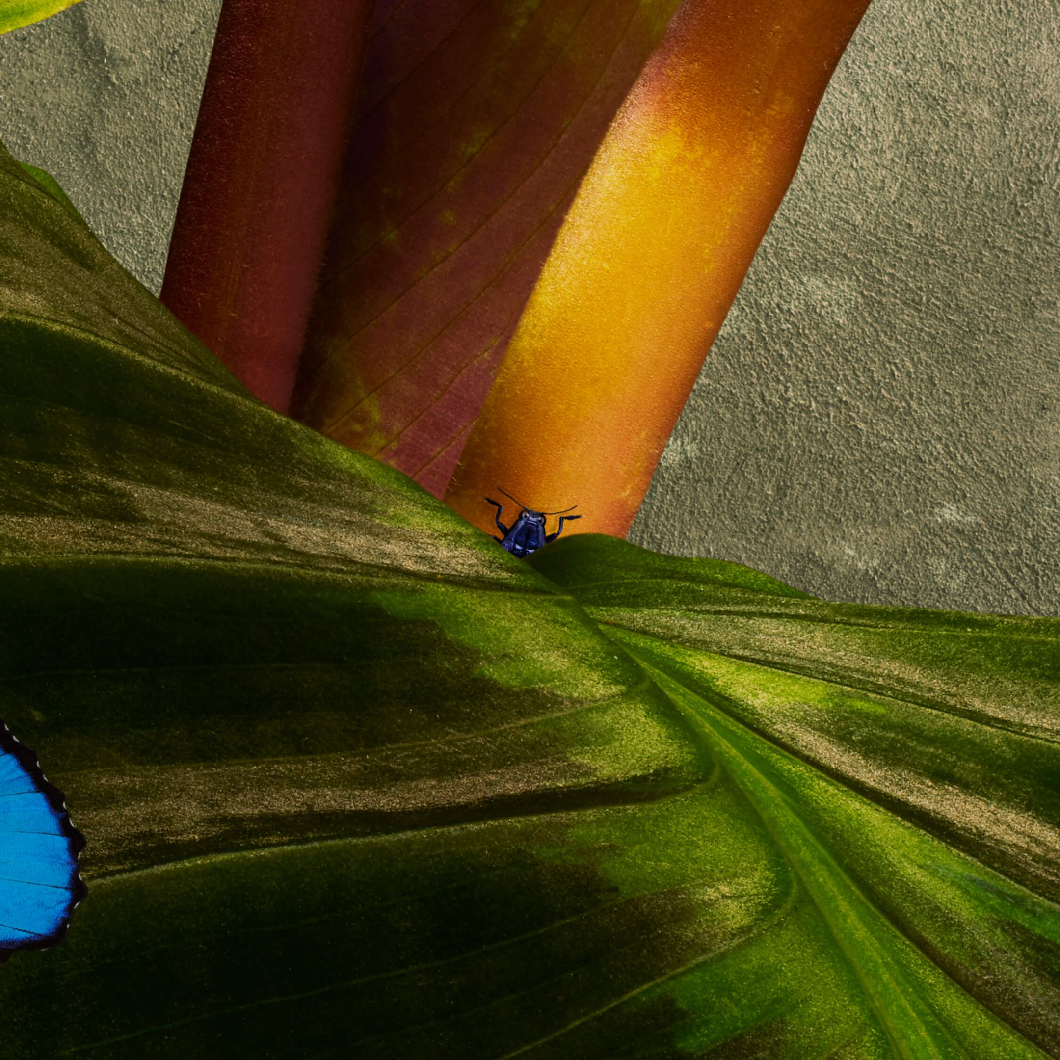 Impianto con belle bitte verdi e farfalle blu davanti a un bel muro.