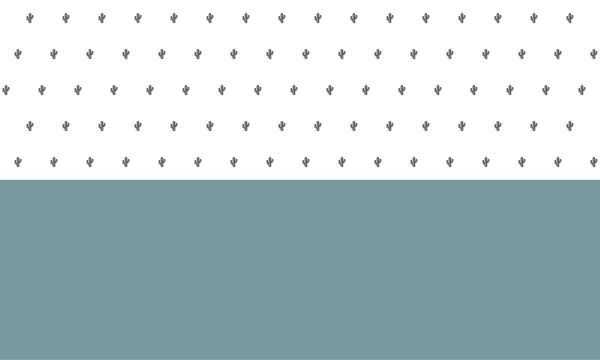 Sfondo grigio-blu che va a metà della stampa su fondo bianco con piccoli cactus neri.