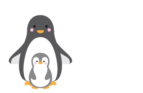 Carta da parati fotografica con un pinguino grande e piccolo su sfondo bianco