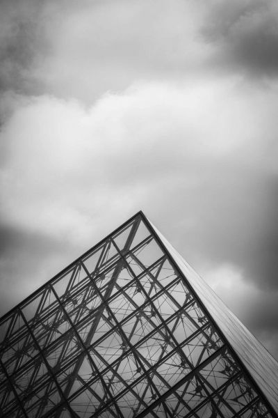 Questo design cattura l'essenza dell'architettura moderna in un contrasto potente: le linee pulite di una piramide di vetro di fronte a un cielo nuvoloso in movimento. La struttura geometrica della piramide, composta da connessioni metalliche e superfici di vetro, forma una griglia ritmica che si riflette magnificamente nella palette in bianco e nero. Il punto di vista rafforza la monumentalità dell'edificio, mentre il cielo sopra aggiunge un'atmosfera quasi drammatica. La combinazione di linee pulite e toni minimalisti rende questo design perfetto per un interno moderno o industriale. In un ambiente moderno sottolinea la forza della semplicità e della simmetria, specialmente in combinazione con pareti bianche e mobili lineari. In un contesto industriale, invece, offre un bel contrasto con materiali grezzi come il cemento, l'acciaio e il legno, aggiungendo eleganza senza perdere il suo carattere robusto. Grazie alla sua forza minimalista, questo design è versatile: può essere utilizzato come pezzo forte in un soggiorno, per creare un'atmosfera creativa e ispiratrice in un ufficio, o per fare un'impressione immediata in un ingresso. Si adatta perfettamente anche in un loft urbano o in uno spazio espositivo. La forma affilata della piramide contro le nuvole fluide sottolinea l'incontro tra il design umano e gli elementi naturali. Il risultato è una composizione senza tempo che trasmette sia forza che sottigliezza - un omaggio all'architettura moderna e alla bellezza del contrasto.