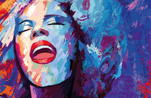Carta da parati con il dipinto della testa di una donna dipinta astratta