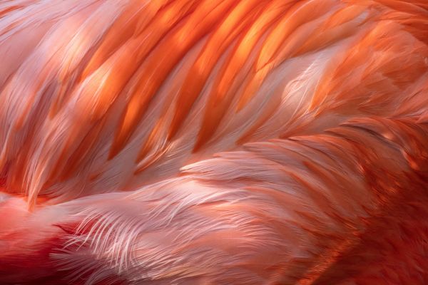 Primo piano di belle piume rosa di un fenicottero. Queste piume danno alla carta da parati un aspetto unico.